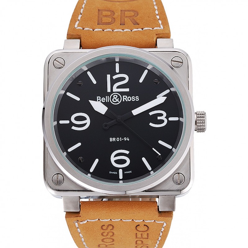 Bell et Ross BR 01-94 Cadran Noir Argent Marron Bracelet en cuir