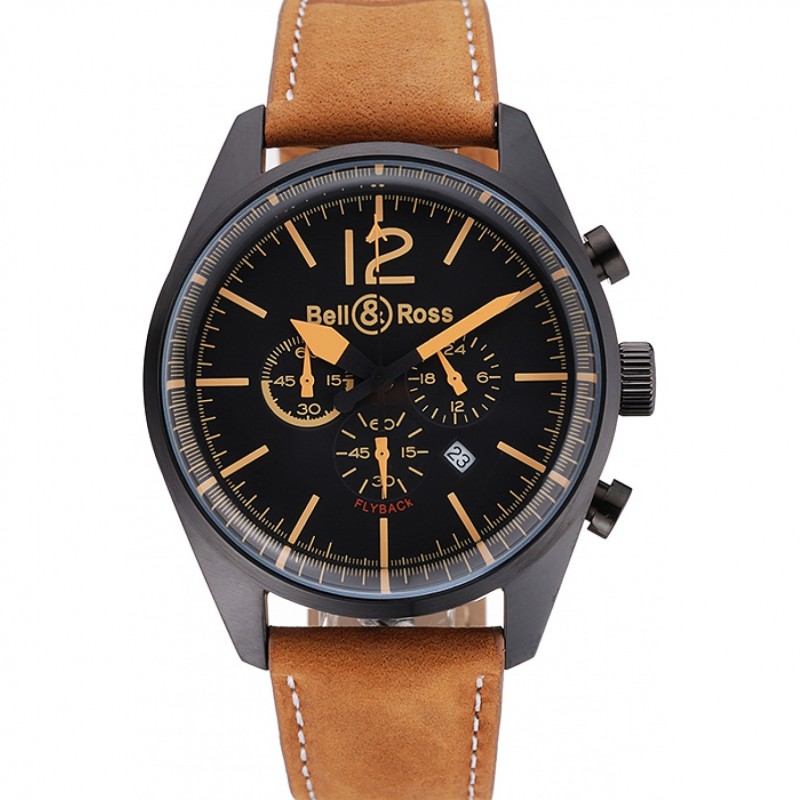 Meilleur Replique Montre Bell et Ross BR126 Flyback Cadran Noir Noir Marron Suede Bracelet en cuir