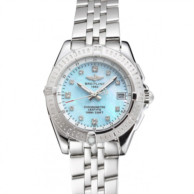 AAA Replique Montre Breitling Colt Lady Light Blue Diamond cadran heure marques Boîtier et bracelet en acier inoxydable