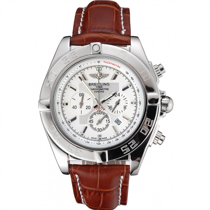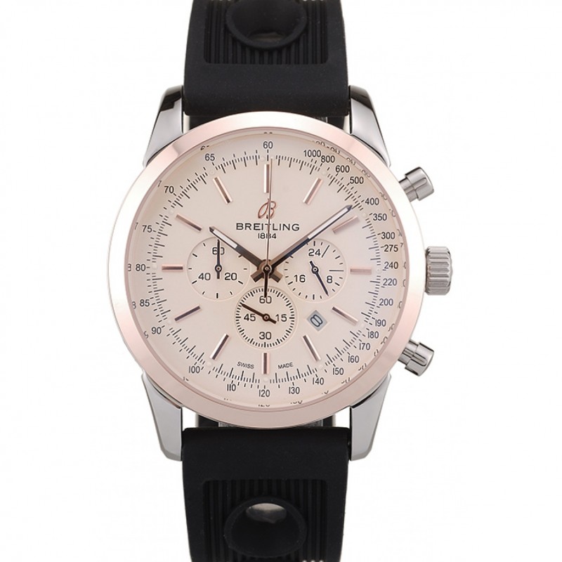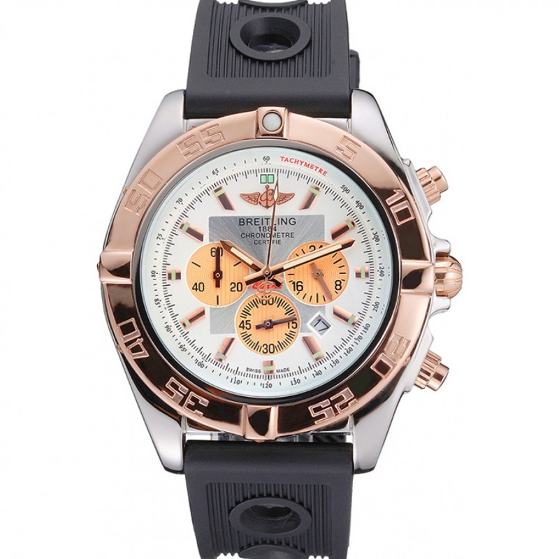 Meilleur Breitling Chronomat cadran blanc or rose lunette et Subdials Boîtier en acier inoxydable bracelet en caoutchouc noir