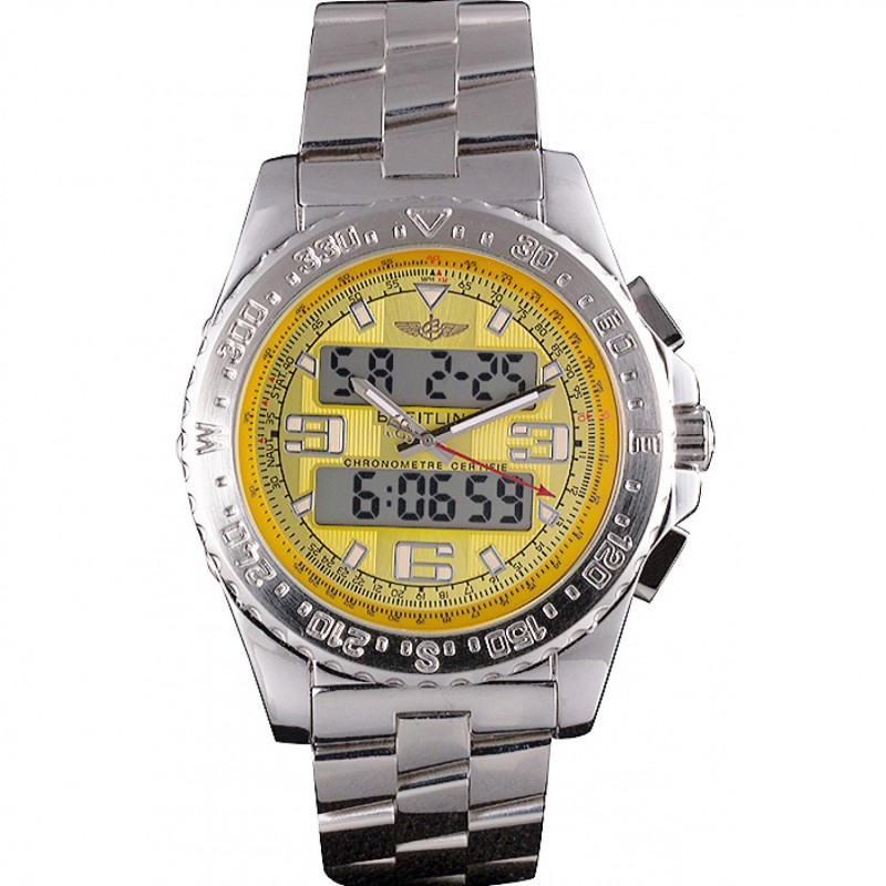 Breitling Certifie jaune cadran en acier inoxydable Bracelet en or rose Bezel