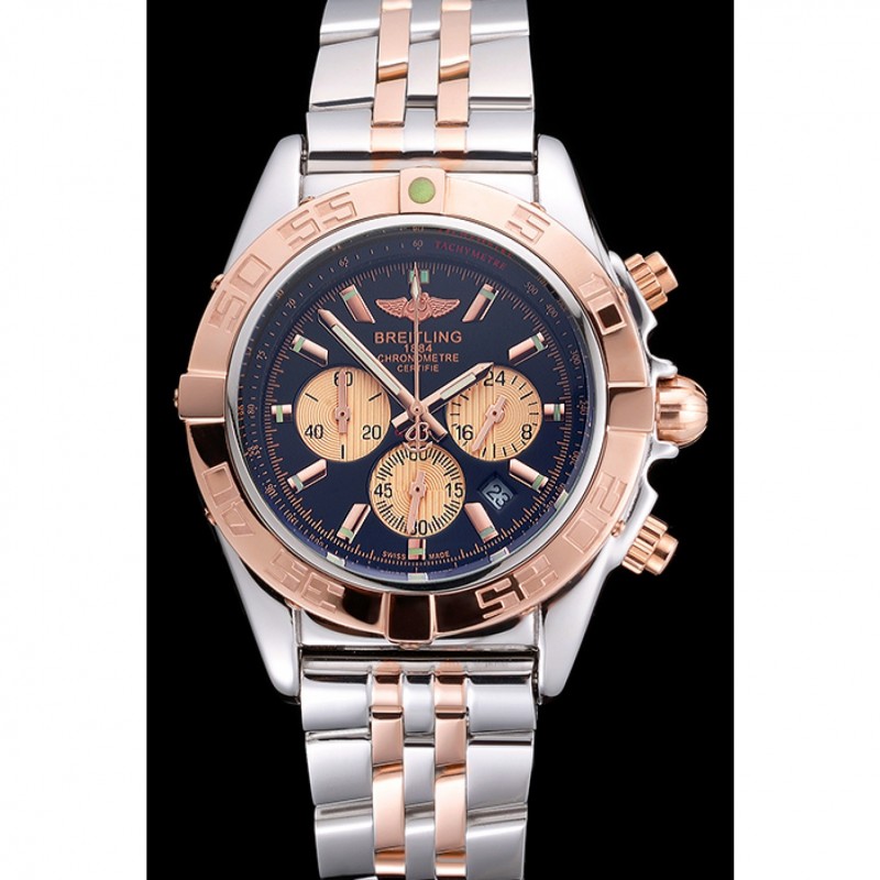 Breitling Chronomat cadran noir or rose lunette et Subdials Boîtier en acier Bracelet Deux Tone