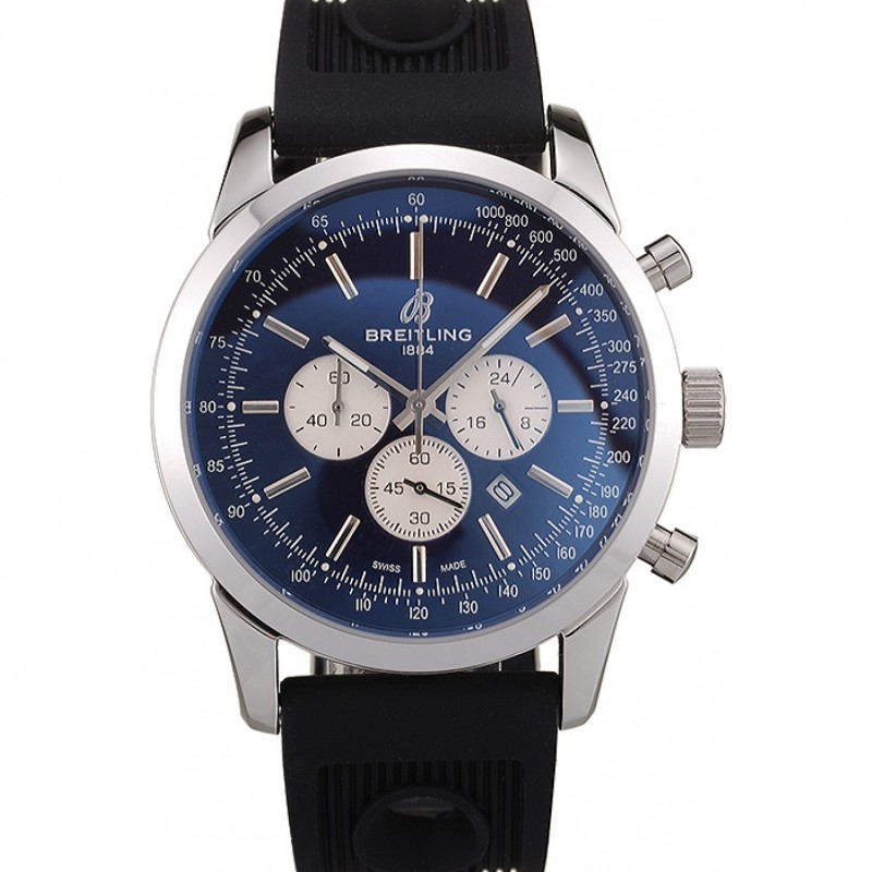 SS Breitling Transocean cadran noir bracelet en caoutchouc noir poli Lunette en acier inoxydable