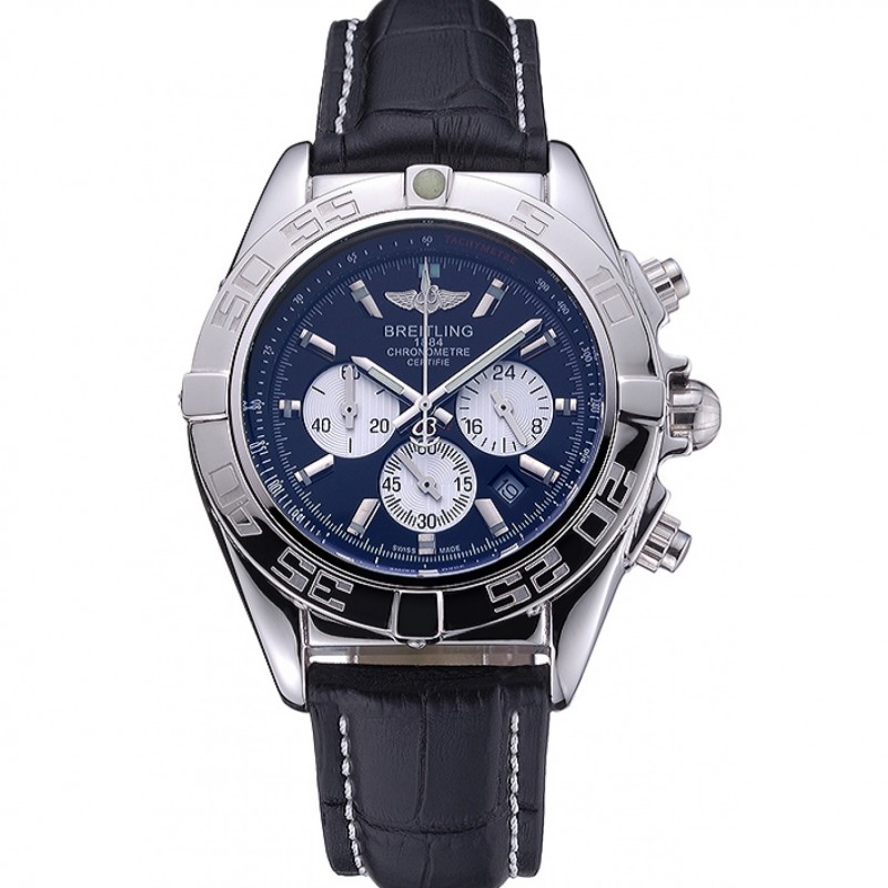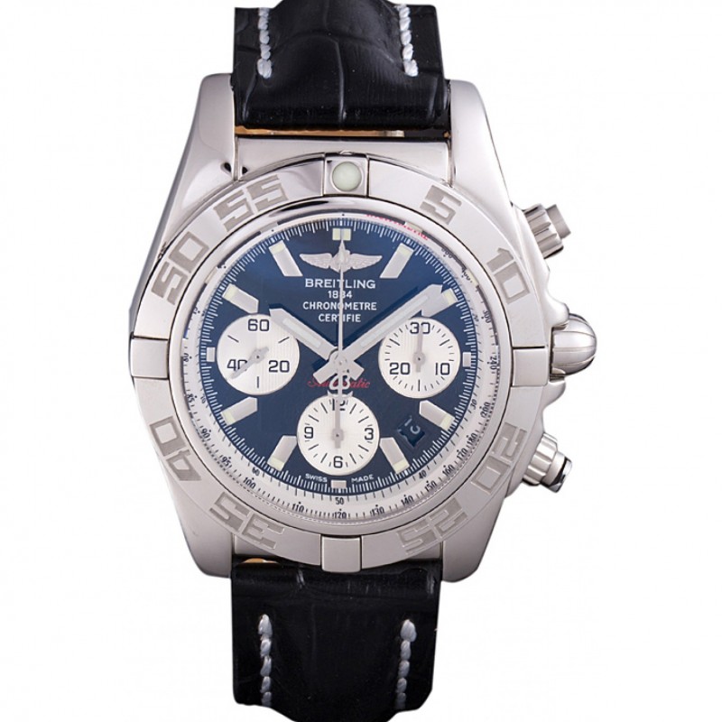 Pas Cher Replique Montre Breitling Chronomat 44 Cadran noir avec Subdials blanc en cuir noir Bracelet 622511