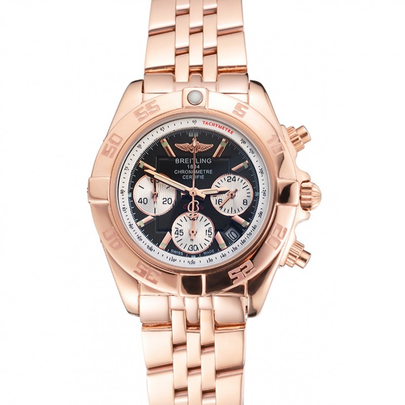 Meilleur Breitling Chronomat Quartz Bleu foncé Cadran or rose et bracelet