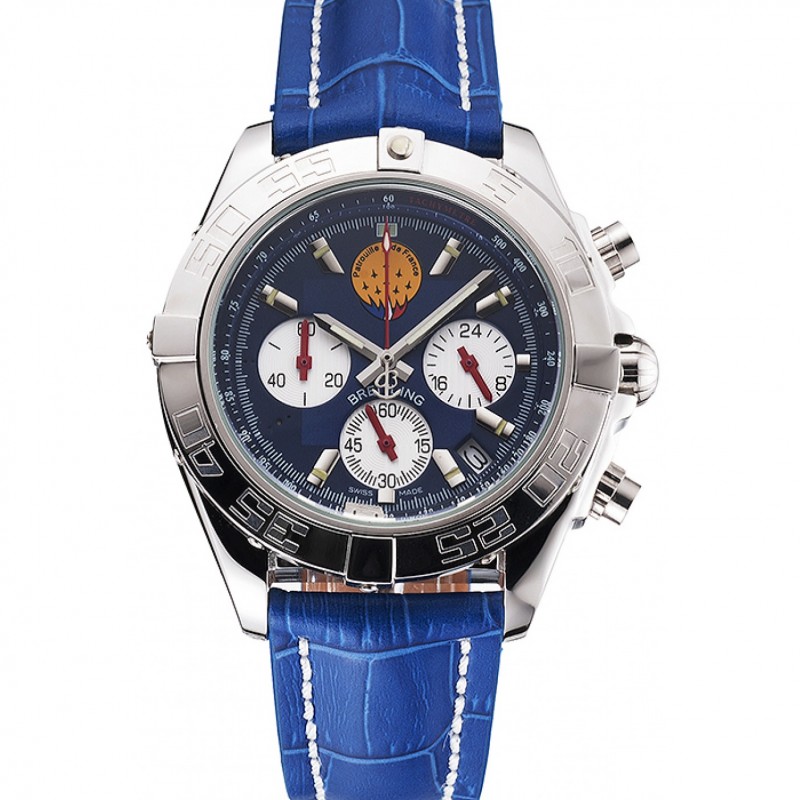 Breitling Chronomat Patrouille de France Bleu Cadran Boîtier en acier inoxydable Bracelet en cuir bleu