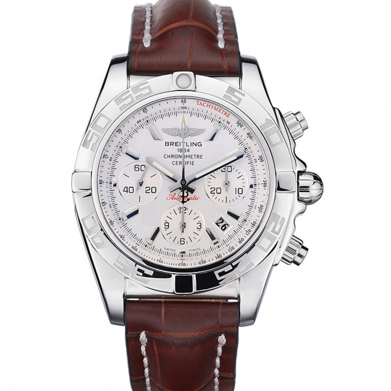Pas Cher Replique Montre Suisse Breitling Certifie Lunette en acier inoxydable Brown Croco Bracelet en cuir cadran blanc 80285