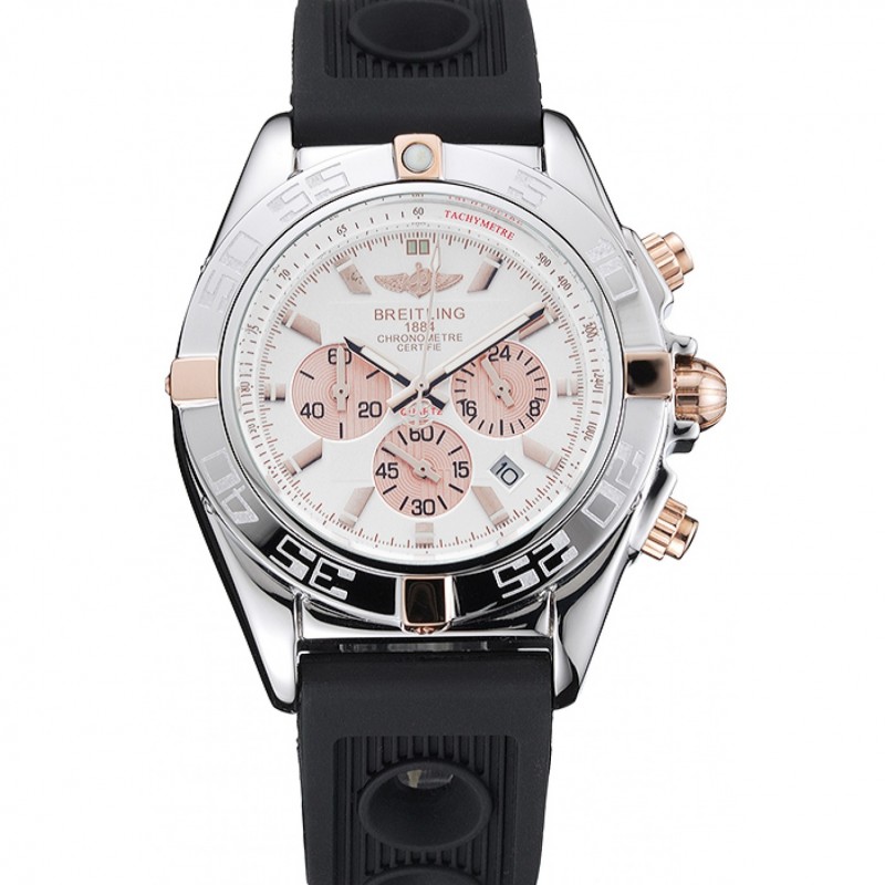 Meilleur Breitling Chronomat cadran blanc or rose lunette et Subdials Boîtier en acier inoxydable bracelet en caoutchouc noir