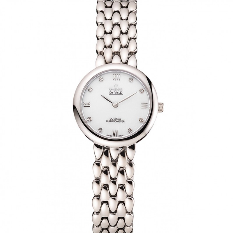 Omega De Ville Prestige Non Date cadran blanc avec des diamants Boîtier en acier inoxydable et le bracelet