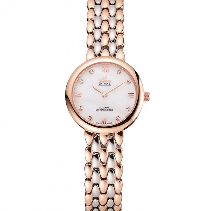 Haut Gamme Replique Montre Omega De Ville Prestige Non Date cadran blanc avec des diamants boîtier en or rose Bracelet deux tons