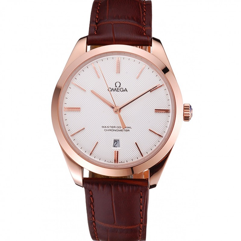 Pas Cher Replique Montre Omega Tresor Maître Co-Axial Cadran Blanc Boîtier en acier inoxydable Bracelet en cuir noir