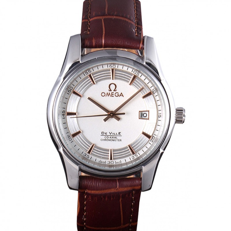 Omega DeVille suisse lunette en or rose bracelet en cuir brun 7616