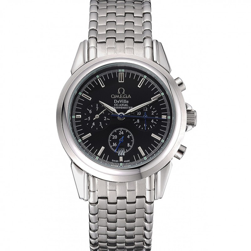 Haut Gamme Omega DeVille Bracelet en acier inoxydable cadran noir 621685
