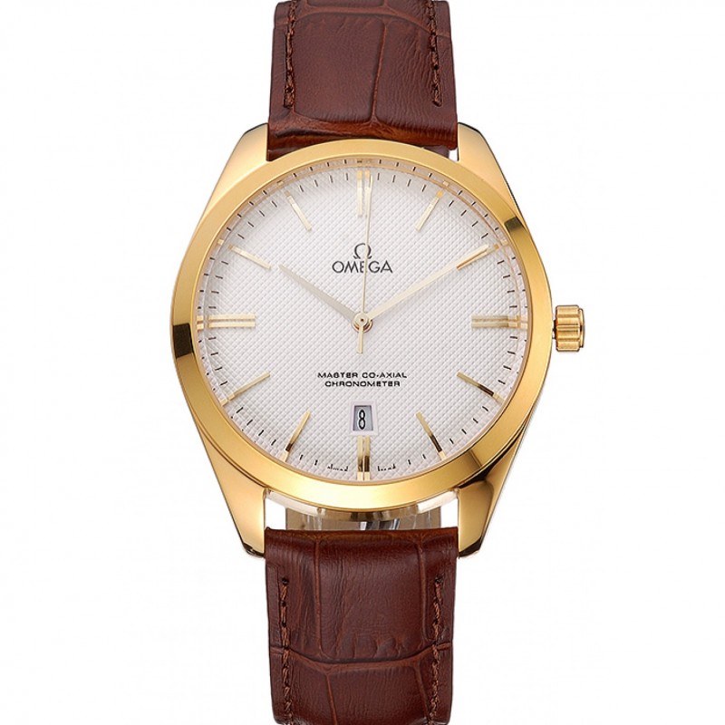 Pas Cher Replique Montre Omega Tresor Maître Co-Axial Cadran Blanc boîtier en or bracelet en cuir brun
