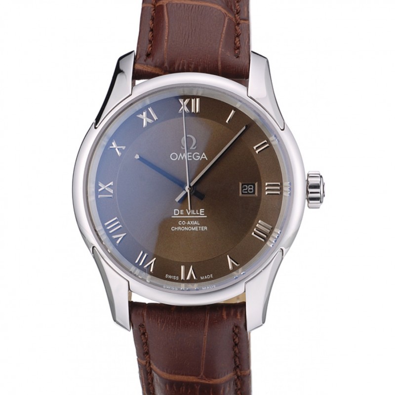 Omega DeVille suisse Lunette en acier inoxydable bracelet en cuir brun 7619