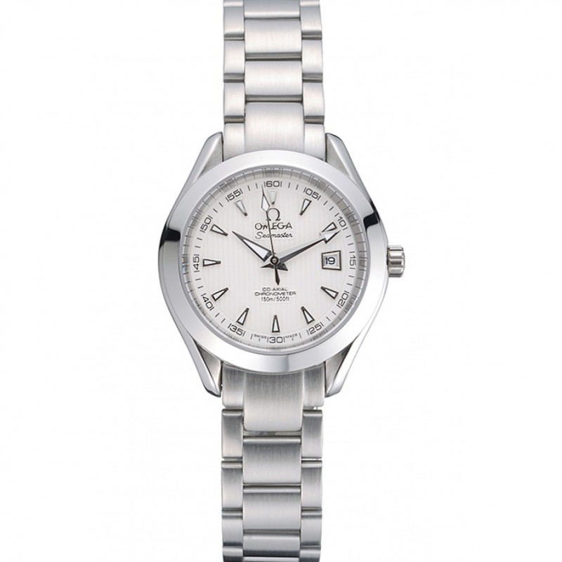 Luxe Omega Seamaster Aqua Terra cadran blanc Bracelet en acier inoxydable Mesdames 622446