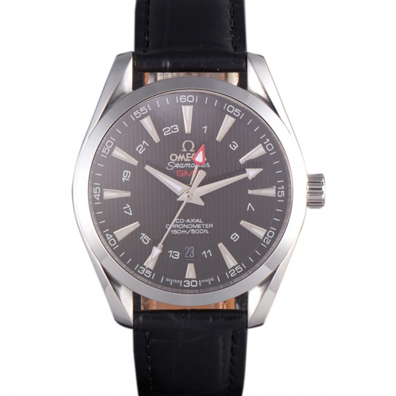 Omega Seamaster Aqua Terra Chrono GMT cadran noir Bracelet en cuir noir 622535