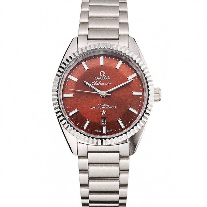SS Replique Montre Omega Globemaster Brown Case Dial en acier inoxydable et le bracelet