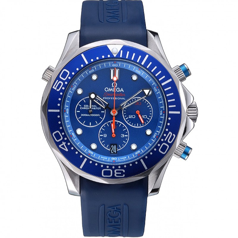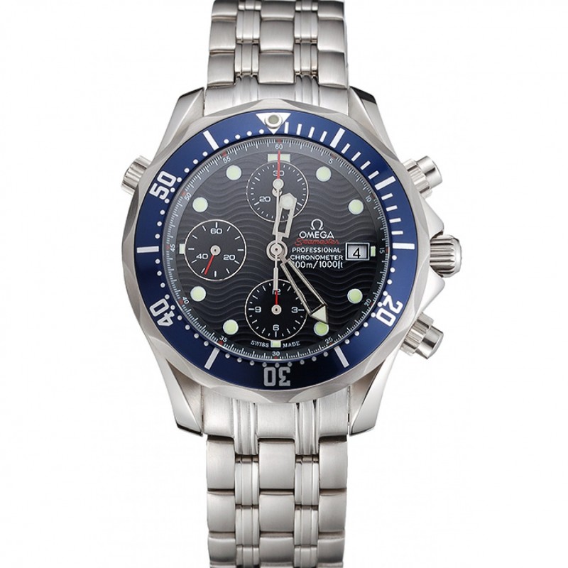 Suisse Omega Seamaster Chronographe 300 m Cadran Bleu Bleu Lunette inoxydable Boîtier et bracelet acier