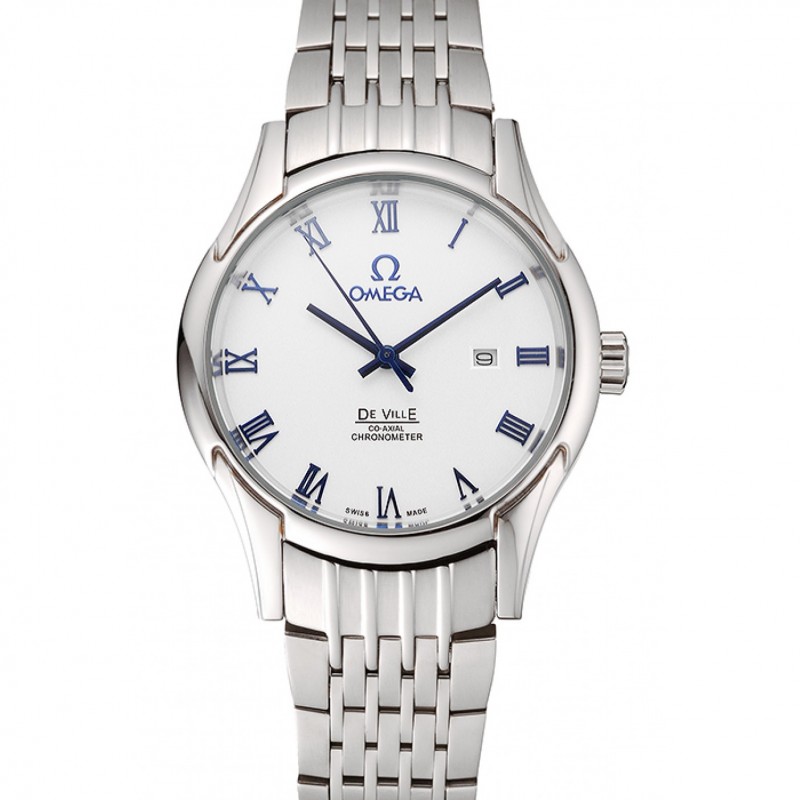 Meilleur Omega De Ville Blanc Cadran Boîtier bleu acier inoxydable et numéraux Bracelet 1453787