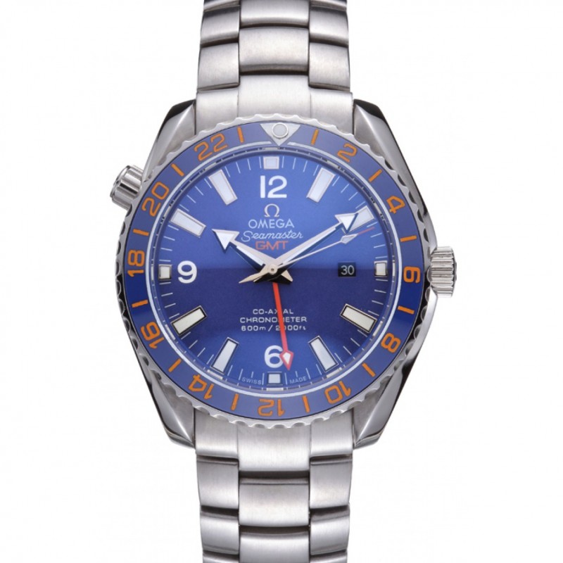Haut Gamme Omega Seamaster Planet Ocean GMT cadran bleu bleu bracelet en cuir 622394