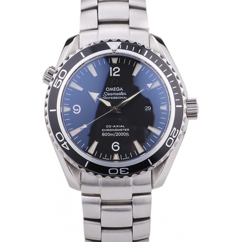 Pas Cher Replique Montre Omega Seamaster Planet Ocean Noir Lunette cadran noir en acier inoxydable Bracelet 80240