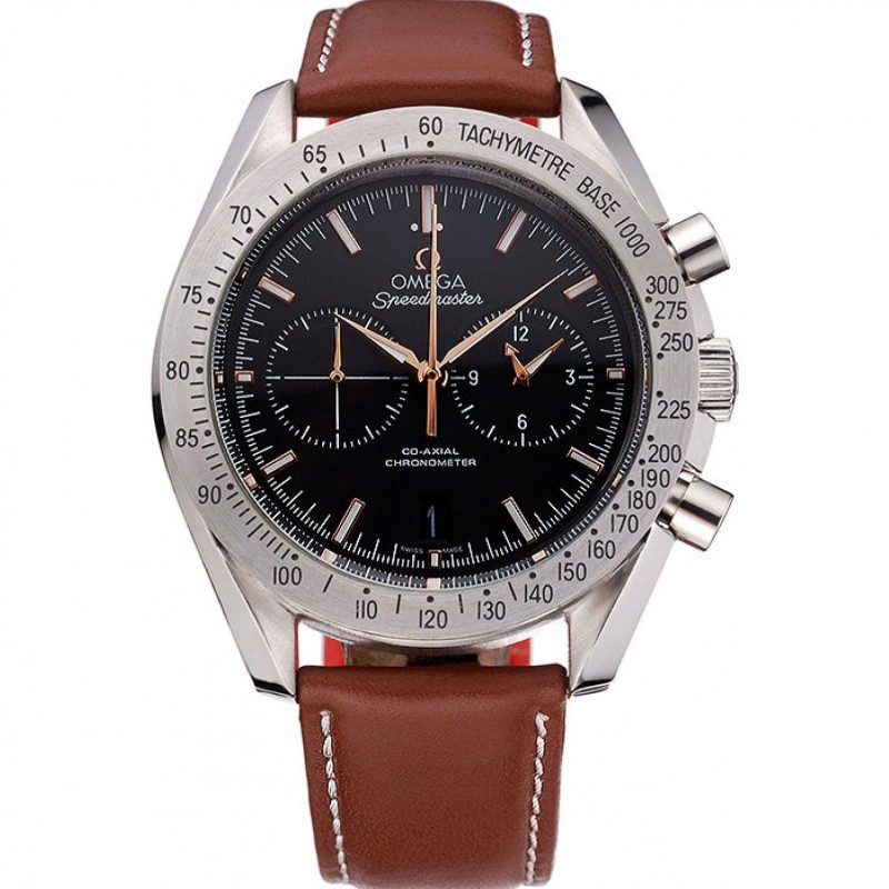Omega Speedmaster cadran noir Boîtier en acier inoxydable bracelet en cuir brun 622806