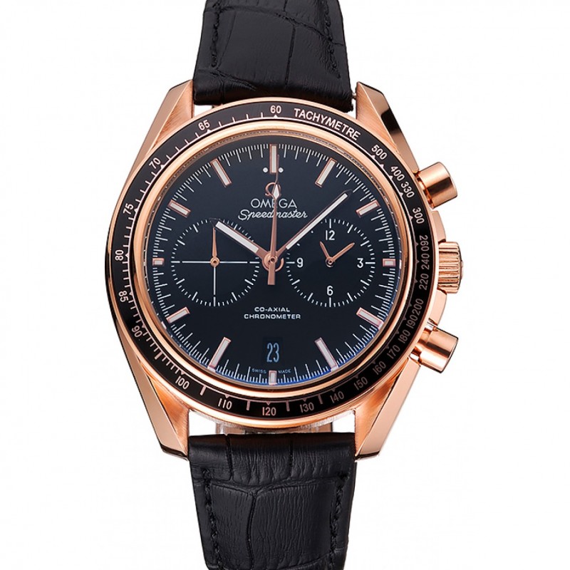 Haut Gamme Omega Speedmaster cadran noir boîtier en or bracelet en cuir noir 622809