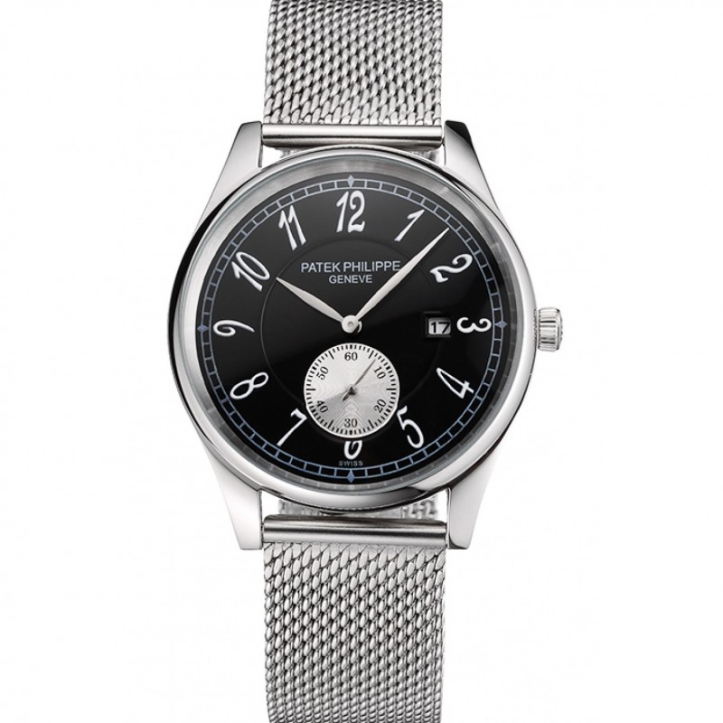 Patek Philippe Calatrava petites secondes cadran noir boîtier en acier inoxydable et bracelet