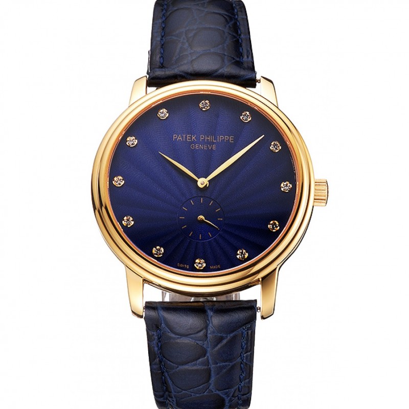 Patek Philippe Calatrava Bleu Date gaufrée Cadran boîtier en or bleu bracelet en cuir