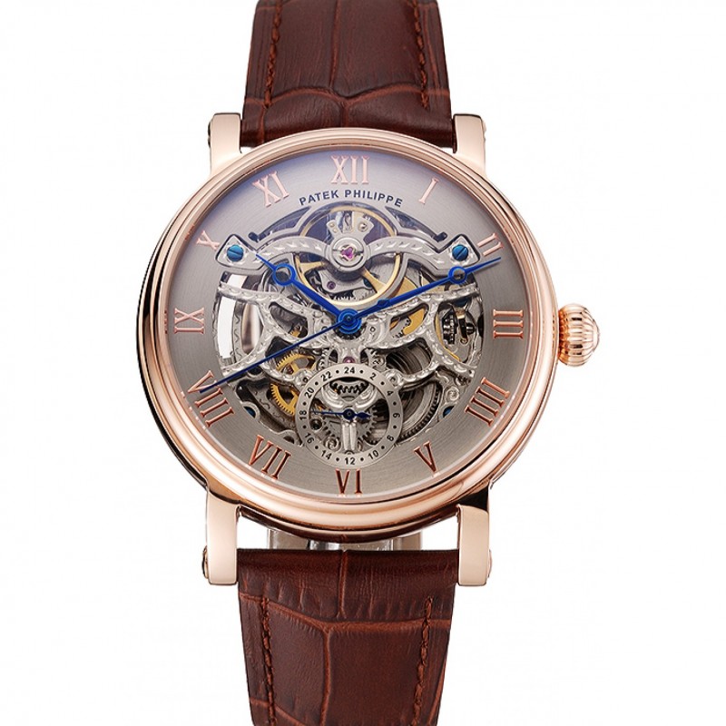 Patek Philippe Grand Complications gris Squelette Cadran or rose bracelet en cuir brun 1453807