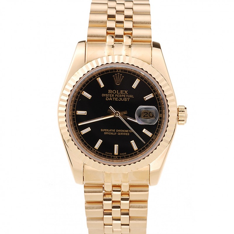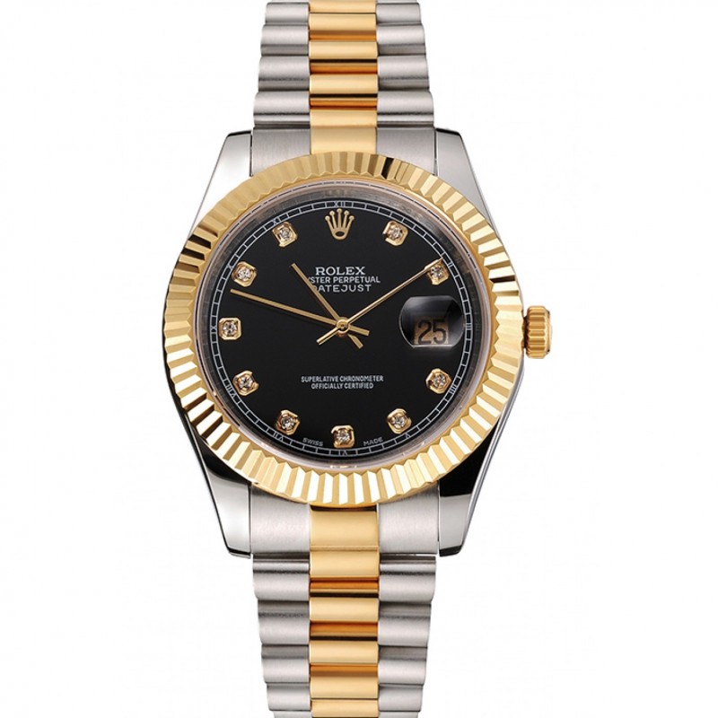 Haute qualité Swiss Rolex Datejust cas cadran noir en acier inoxydable d’or Bezel Bracelet deux tons