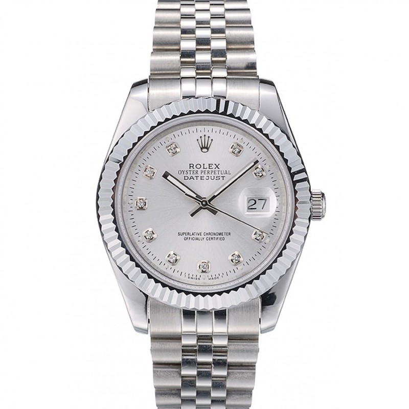 SS Nervuré Rolex Datejust suisse Lunette en acier inoxydable Cadran Argent 41996
