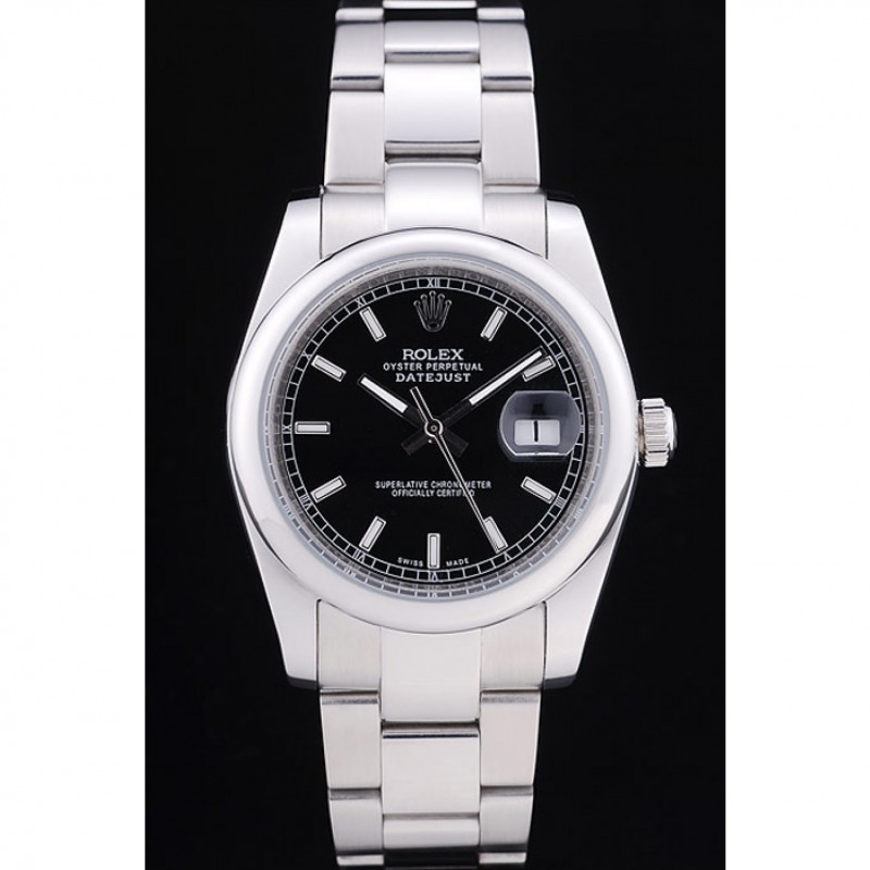 Swiss Rolex Datejust cadran noir Dimond heure marques Boîtier en acier inoxydable et le bracelet