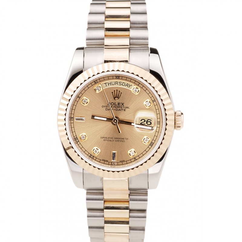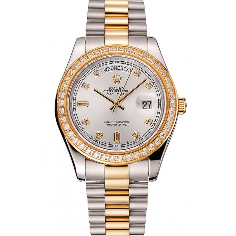 Day-Date Rolex suisse cadran blanc diamant d’or de cas de deux tons Bracelet en acier inoxydable 1453972