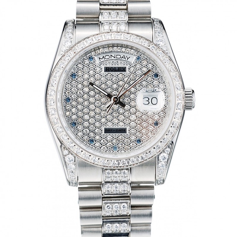 Luxe Rolex DayDate diamant plaqué bracelet en acier inoxydable plaqué diamant Cadran 41986