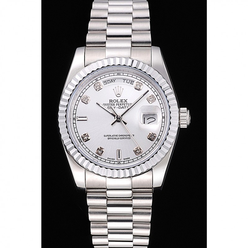 Day-Date Rolex poli cadran argenté en acier inoxydable
