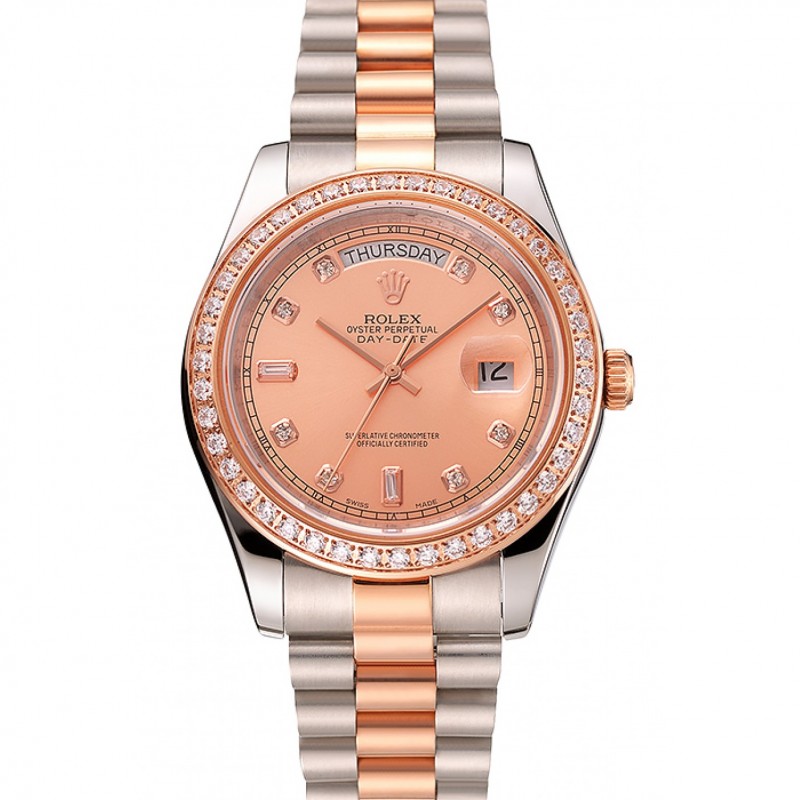 Swiss Rolex Day-Date diamants lunette en or rose et staineless Bracelet en acier 1454107