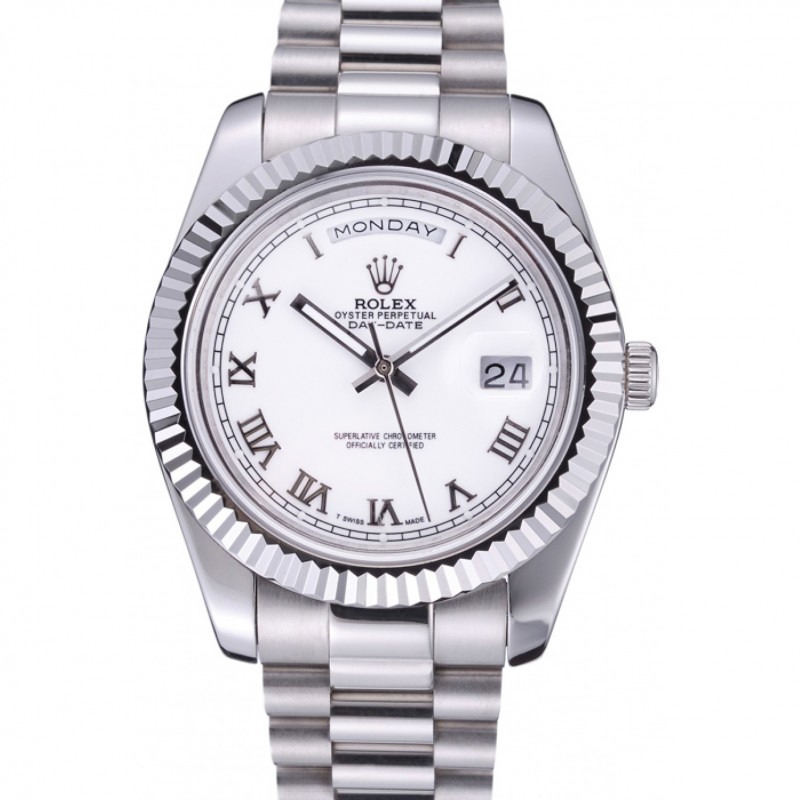 Meilleur Replique Montre Day-Date Rolex Cadran Blanc Bracelet en acier inoxydable 622547