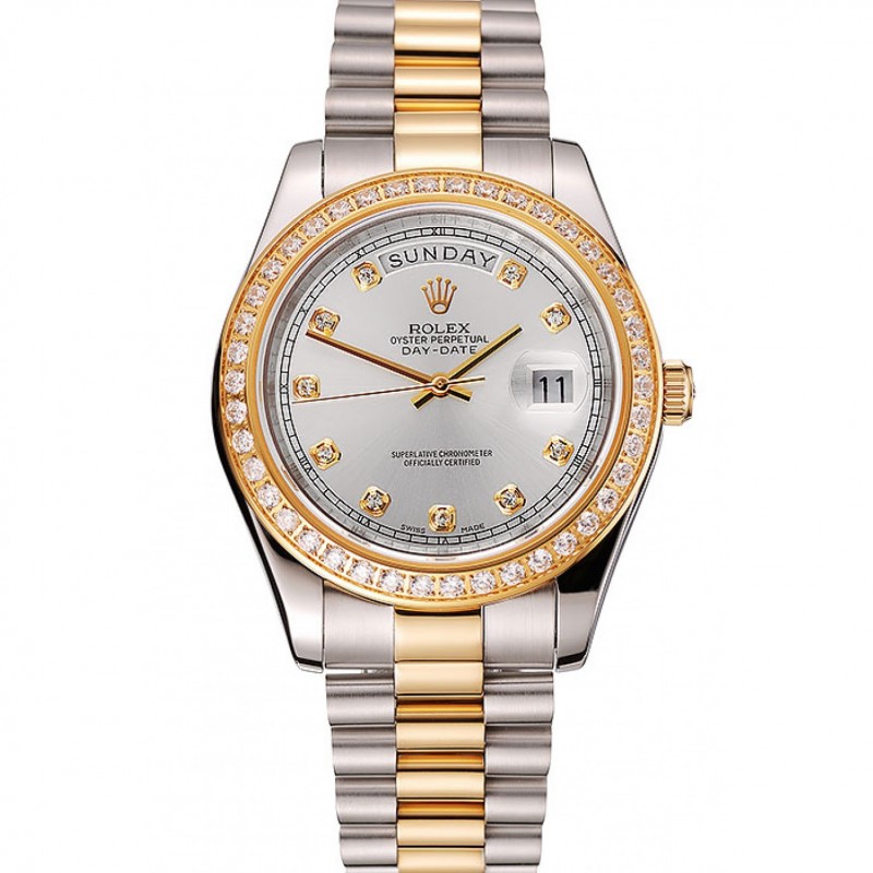Day-Date Rolex suisse cadran blanc diamant d’or de cas de deux tons Bracelet en acier inoxydable 1453971