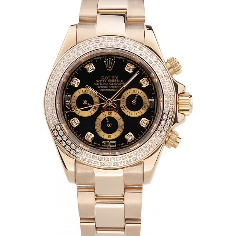 Haute qualité Rolex Daytona Cosmograph cristaux arc-lunette en or rose Cadran Noir 80251
