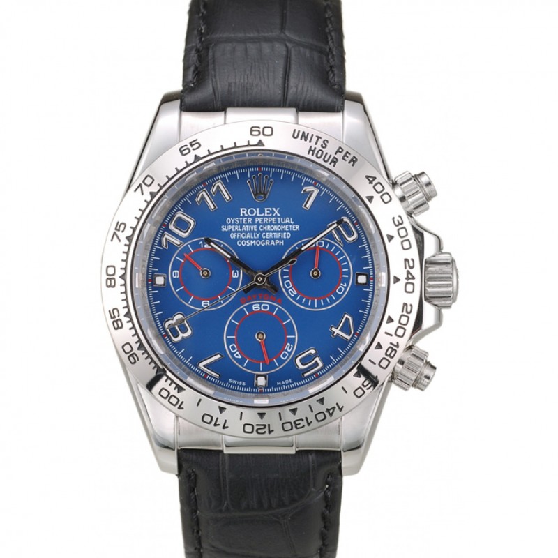 Haute qualité Rolex Daytona en acier inoxydable cas cadran bleu Bracelet en cuir noir