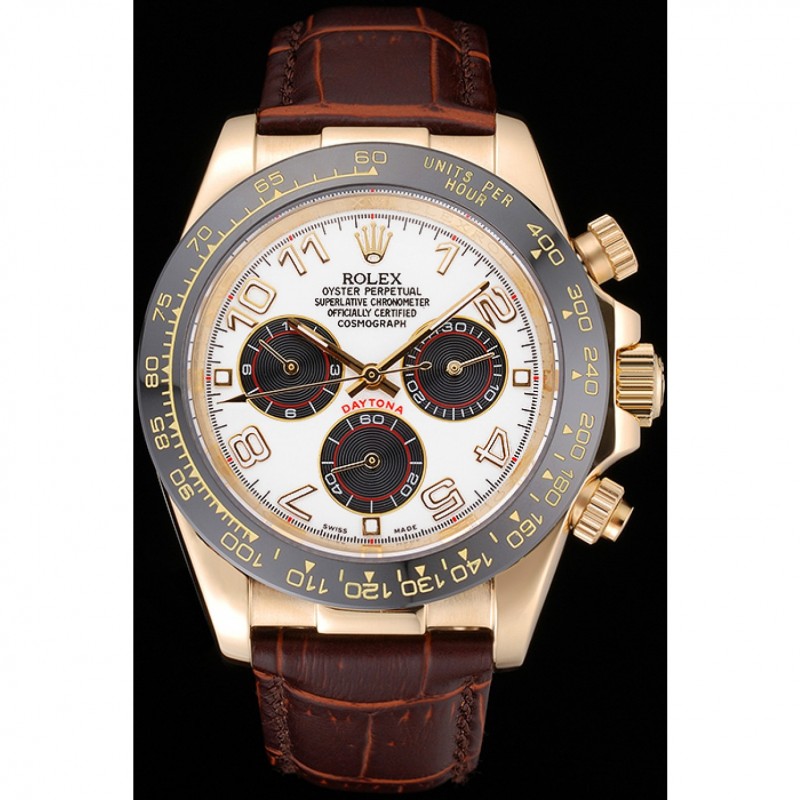 Meilleur Replique Montre Rolex Daytona Cosmograph boîtier en or noir Subdials Brown Bracelet en cuir 622634