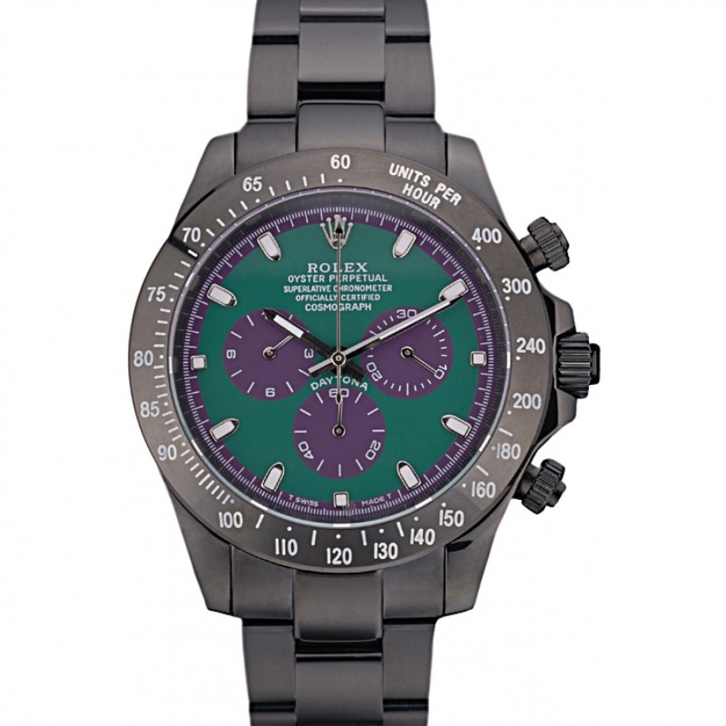 Luxe Replique Montre Rolex Daytona Noir Ion plaqué Tachymeter Noir Bracelet en acier inoxydable Cadran Vert 80246
