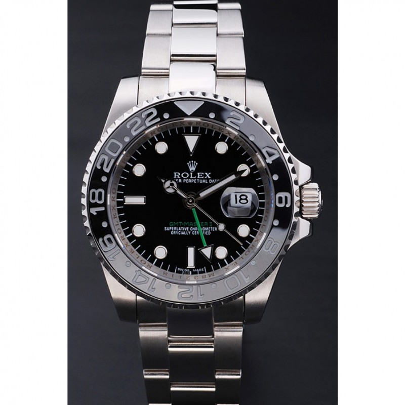 Luxe Replique Montre Rolex GMT Master II lunette en céramique noire Cadran Noir 98229