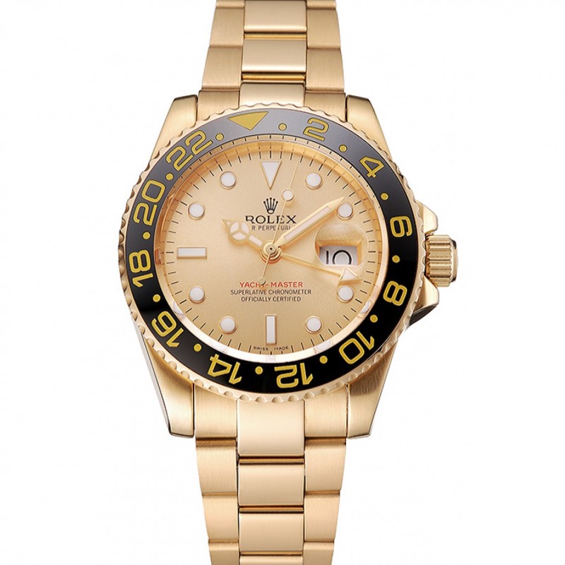 Suisse Rolex GMT Master II Or cadran noir lunette en or Boîtier et bracelet 1453749