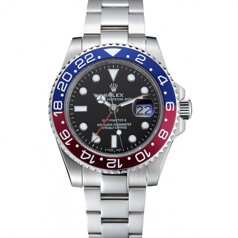 AAA Replique Montre Rolex GMT Master II Bleu Rose Rouge Noir Lunette Cadran