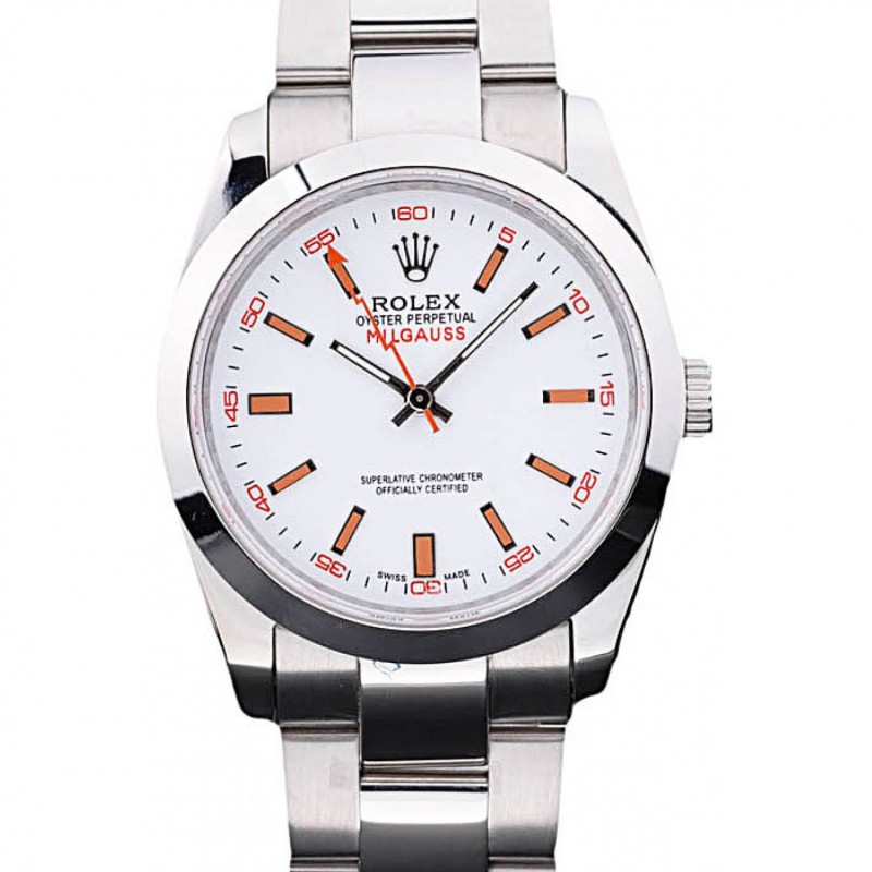 Pas Cher Swiss Rolex Milgauss Cadran Blanc orange Marquages inoxydable Boîtier et bracelet acier