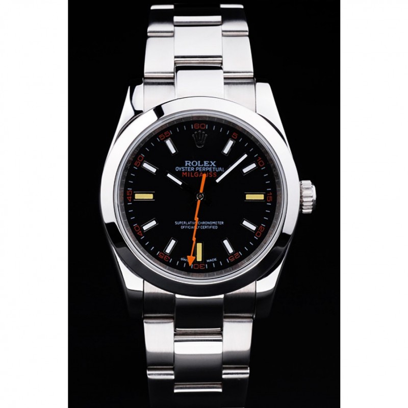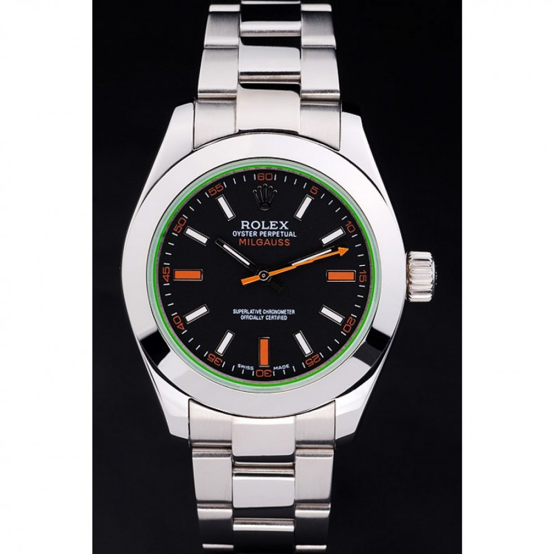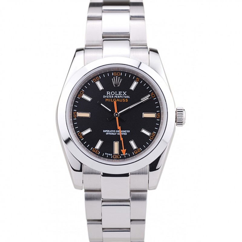 Swiss Rolex Milgauss cadran noir orange Marquages inoxydable Boîtier et bracelet acier