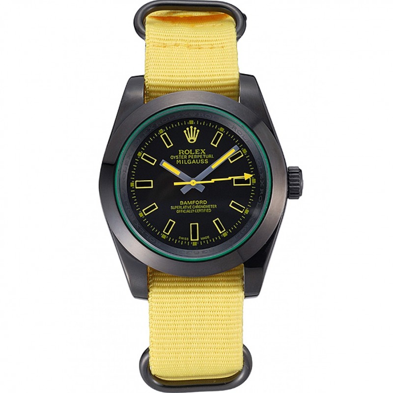 Haute qualité Rolex Milgauss Bamford jaune bracelet en nylon 621999